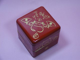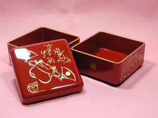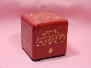 両手を上げたねこさんと、おめでたい梅、松などが描かれています。