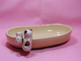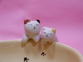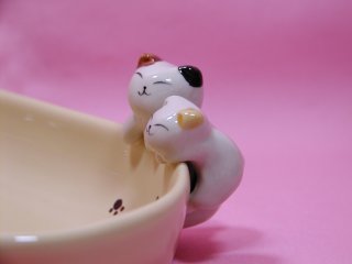 小皿 よじ登っているねこさんが付いた小皿です。 横幅10cmくらいで、ある程度深さもあるので便利です。 ピーナッツなどのおつまみを入れても良いし、アクセサリー入れにしてもいい感じです。 ねこさんたちの後ろ姿がかわいい(≧∇≦)