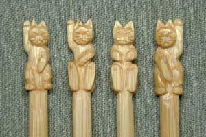 | 竹箸削って作った招猫耳かき、1匹さぼってるけど... | |||