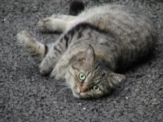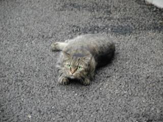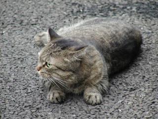 道路のグレ〜と毛色が保護色のようになっているネコさん(*^m^*)