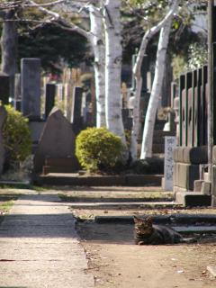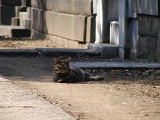 谷中墓地を生活の場としているネコさんです。 ちょうど、この後、おじさんがご飯を持ってきてくれてました。 私がソロソロと近づいていったらサ〜ッって逃げちゃったのに、 そのおじさんには猫なで声で駆け寄って行きました(^^ゞ