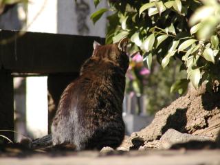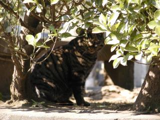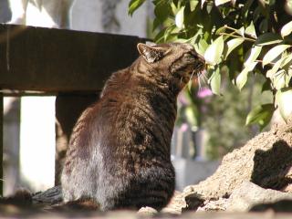 私が近寄っていった後、逃げ込んだ植え込みの中。