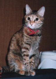 ネットのお友達TOMATOさん家のクッキ〜ちゃん! 2002年7月で14歳。お目目クリクリの愛らしい表情。 なかなかの美猫さんですぅ。 ご家族には「う○ち色の猫」と言われているそうな。。。(*^m^*) お隣の招き猫さんは、TOMATOさんの姪御さんオリジナル。かわい〜!