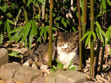 温かいお日様が降り注ぐ竹藪の中でお休み中。。。