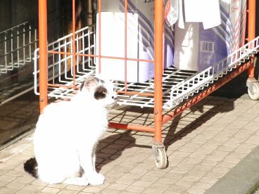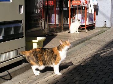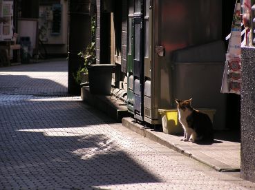 路地裏の小さな商店の前で出会った猫さんたち。