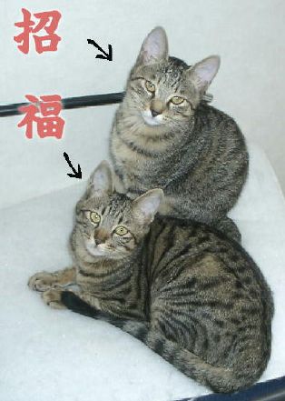 鉄火どんさん家の新入り猫さんたちを鉄火どんさんから頂きました。 ありがとうございます〜\(^o^)/ 「微妙に福を招いてくれる」という(=^m^=)招ちゃんと福ちゃん兄弟。 良〜いお顔ですにゃ〜。