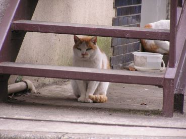 階段の隙間から猫さんの視線。。。じじじぃ〜。。。