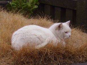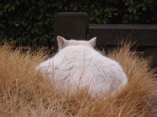 真っ白の猫さんめっけ。良〜い毛並みしてますね。