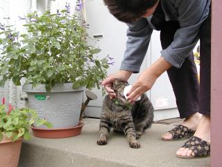 お隣さんのたろちゃんが風邪をひいてしまったようで、鼻水をたらしてました。 撮影中、おもいっきりくしゃみをして、鼻水が横にくっついてました。 ちゃ〜んと、おかぁさんにふいてもらってました。