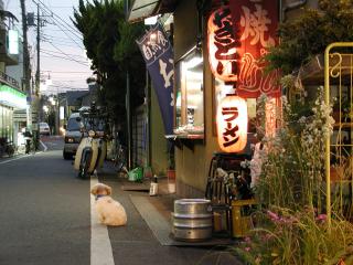 同じ商店街の焼鳥屋さん。前にいるのはワンコだよね?