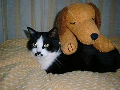 ちょっとシリ〜ズ化しつつある、YUKOさんのご実家のぷち君です。 YUKOさん、ありがと〜\(^o^)/ ポチッとついている(?)お髭がなんともキュ〜ト! ワンちゃんのぬいぐるみを背負って、憮然とした表情もナ〜イスッ! どんな時でもク〜ルさを失わないぶち君です。 旅行記がとっても楽しい(旅行会社の人にも好評?)YUKOさんのサイトはコチラ。
