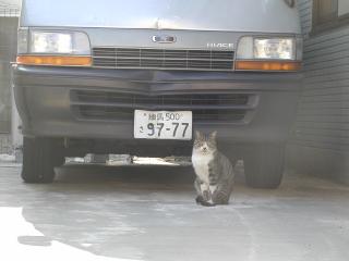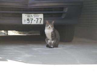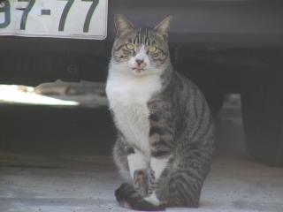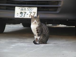 雨が上がって、い〜いお天気! うにゃ、にゃんこ発見! ラッキ〜\(^o^)/ でもね、ぜ〜んぜん動かないんですよ。ビックリしちゃったのでしょうか? まさに、雨降って猫固まるの図、でした。