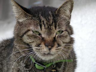 にゃはは〜、久しぶりにご近所にゃんこのたろちゃんに出会いました。 やっぱり、たろちゃんの顔はインパクトあります♪\(^^)\ 相変わりずのこの目つきがたまりましぇ〜ん。