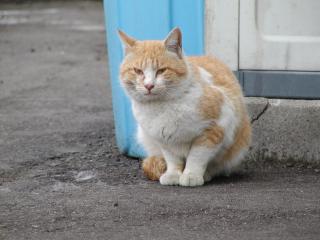 先日、行った社員旅行の温泉地で出会ったネコさんです。
