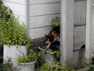 お家とお家の隙間から突如現れたネコさんと遭遇!