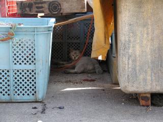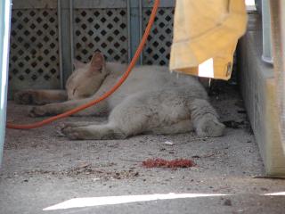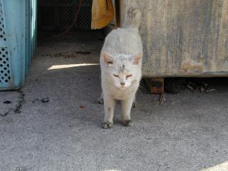 漁港の片隅の資材置き場のおく〜の方で休んでいた猫さん。 本当は真っ白い猫さんなんだろうけど、顔も身体も汚れてグレ〜に・・・。 この猫さんは人に慣れているらしく、わざわざ出て来てくれました。 人間に媚びない漁港猫さんも多い中、この猫さんは人間に依存する事で 生きてきたのかも。。。それも一つの生きる道!体格もなかなか良いみたいだし、 このまま自由に生きて欲しい!また会えるといいね。