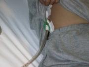 左の写真は、肺からの空気を抜く為の機械です。脇の下から肺へ管を差し込み、この機械での空気の抜き取りに、約2週間ほどかかりました。犬のように機械につながれているので(管は2mくらいだったかな?)、どこへも行けず、寝返りもうてず、ベッドに2週間。お陰で腰痛と付き合うことになってしまいました。でも、仕事が忙しい中、毎日お見舞いに来てくれた旦那さんには、本当に感謝でした(涙) |