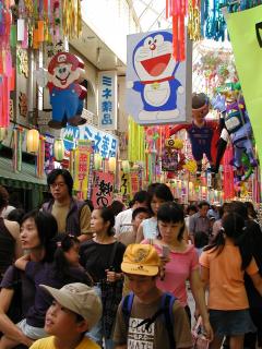 七夕祭りと言えば仙台ですが、ねこ丼家の近くでも割と有名な七夕祭りがあります。それが「阿佐ヶ谷七夕祭り」。ねこ丼家毎年恒例行事の一つです。毎年のことですが、も〜人人人でいっぱい。しかも、あまり広くないアーケードの中なので、蒸し暑いったらありゃしない(^^ゞ などと文句を言いつつ、何故か毎年出かけちゃうんですよねぇ。私がまだ小学生くらいの時は、飾り付けも、もっと凄かったような記憶があるのですが、ここ最近は不景気のせいでしょうか、七夕の飾り付けよりも、お店のバーゲンセール状態のような気が・・・。でもねぇ、阿佐ヶ谷って面白いんですよ。ちょっと変わったお店とか怪しい(?)お店なんかもあったりして。こういった感じのゴチャゴチャした街って好きだな〜。 |
