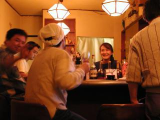 夜は、お酒を飲みながら、和気藹々と。お酒が苦手という方にも、様々なソフトドリンクで、もてなしてくれます。女性1人でフラっと行っても、すぐに楽しい雰囲気の輪の中に入れます。真ん中の女性が、お友達のようこさん。青豆亭をお手伝いされています。とってもきさくで、お話上手。いやなことがあっても、青豆亭に行って、ようこさんとお話しながら、おいしいお茶を飲む。これだけで、すべて忘れられそう。 |
