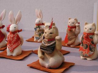 今回、うちでお招きさせて頂いた招き猫さんと同じネコさんたちです。ウサギやネズミも、とってもキュートでした。あまり甘くなりすぎない表情が、1日中見ていても飽きない理由でしょうか。 ![]() |