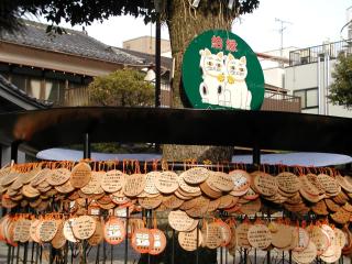 浅草駅から徒歩15分ほどの場所にある今戸神社。静かな住宅街の中にひっそりとたたずむこの神社が招き猫さん発祥の地と言われています。しかも、ここの招き猫さんは縁結びにご利益があると言うことで、若い女の子がワイワイとお願い事をしていました(*^_^*)![]() |