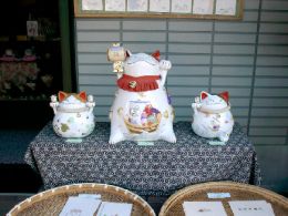 ねこ好きさんには毎度お馴染み「ねこやさん」。 まみぃさん、ぴんき〜さんからご紹介頂きました。ありがと〜! 鎌倉の大きな大仏様のちょっと手前にそのお店はあります。 あのかわいい「ねこや」のネコさん達がお出迎え♪o(^^o ) ( o^^)o 大仏様お参りしたら、次はネコさん達に福を貰いに行きましょ〜。