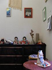 。藍染、草木染、東京友禅、陶器、漆器、アクセサリ−など季節の作品を展示販売されているお店です。私がお邪魔させて頂いた時には「月の宴・草の宴」と題したネコさんの作品展が開催されていました。