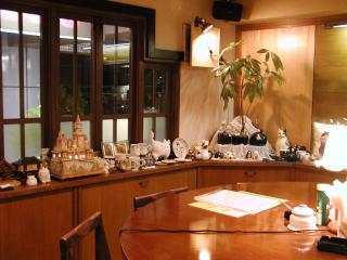 こちらがお店の店内です。お店の方にお願いして撮らせて頂きました。ちょっと見にくくて申し訳有りませんが、店内中、ねこ、猫、ネコのオンパレード。自称にゃんこグッズ収集家のねこ丼もビックリのにゃんこグッズでした。たまたまお客さんが少なかったので、うろうろ歩き回って見せて頂きました。私が持っているものもあり、「こ、これは・・・」というものもありで、とってもラッキーでした。 |