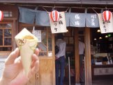 おかげ横町には素朴で美味しいものも、いっぱいあります。その中のひとつが豚捨コロッケ。その場で熱々をハフハフ言いながら食べるのが美味しいんだなぁ〜(=^m^=)おはらい町には伊勢名物「赤福」のお店もあります。招き猫まつり期間中は来る福限定メニューの来る福ニャンチも、おかげ横町、おはらい町のお店で振る舞われます。 |