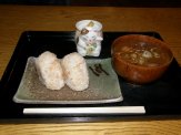 今年は毎年「来る福ニャンチ」のお昼を食べている「とうふ屋」さんが改装工事でお休みだったため、おかげ横町のなかのお店で軽〜く頂きました。招き猫まつり限定のねこまんまおにぎりと豚汁。普通の(=^m^=)おかかおにぎりなのですが、これがみょ〜に美味しくて豚汁との相性も抜群。結局、1日に2回も食べてしまったのでした。写真右は招き猫まつり限定販売のねこシューとプリン。シュークリームはちょっとねこさんに見えない(=^m^=)けど、皮はサクサク、クリームは甘さ控えめで抜群に美味しかったです。プリンはとり〜りなめらか系。 ![]() |