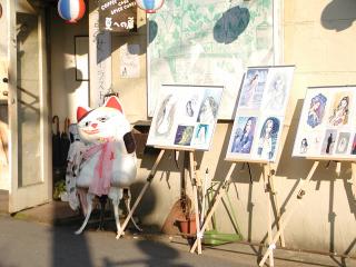 「化け猫喫茶」なるものを発見(*^m^*) 入り口には招き猫さんが!お店の方も化け猫メイクされていて、ちょっとビックリ。「猫の目カレ〜」なんてメニュ〜もありました。住吉神社参道では「骨董市」も。ここにもネコさんいましたよ〜。住吉神社には「あおめまねき」と言う招き猫さんがいます。![]() |