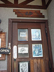 乱歩さんの入り口。趣のある扉には数々のネコさん達。これだけで、ネコ好きさんには「入ってみよ〜」って感じになりますよね(o^^o) 昼は喫茶店、夜はスナックになるそうです。 ![]() |
