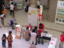 | 瀬戸蔵の中は4階まで吹き抜けになっていて、吹き抜け部分には作家さんねこさんが描かれたバルーンが飛んでました。2005年は万博と同時期ということもあってか万博マスコットのキッコロとモリゾーも来てました(=^m^=) キッコロ大人気っ!ちょっとふらつき気味? | |
