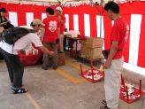 | ゲームは輪投げと玉入れ。輪投げの方が玉入れよりは入りやすいかな?どちらも1等〜3等まで。だめでも参加賞が貰えます。ワイワイ言いながら、みなさん真剣な表情で楽しんでいました。招き猫さんの種類もいろいろあるので、どの子にしようか迷います。もちろん、ねこ丼家も参加。運良く1等賞の招き猫さんもゲ〜ット(*^^)v 電車の方は連れて帰るのが大変かも。