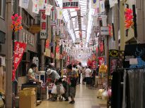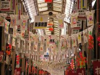 もう一つの商店街「せと末広商店街」。こちらの方がちょっとこじんまりした感じでしょうか。いかにも地元の商店街といった感じ。招き猫まつりinせと末広夏祭りと称して縁日などで賑わってました。 |