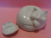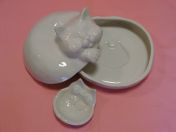 | 毎年、行列が出来る福々ランチ。数量限定で、なくなり次第終了なので、みなさんゲットに必死です。2005年は人形作家、渡辺清次さんの陶製招き猫弁当箱。ねこさんの小皿も付いてました。 |