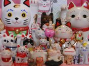 町ぐるみで招き猫まつりをやっているんだなぁ〜と一番実感できる商店街。地元のお店も招き猫さんで盛り上がっていました。毎年、限定販売される福々ランチの販売をしているお店も集中しているので、朝から行列ができているお店もありました。でも、待っているのも楽しいんですよね〜。 |