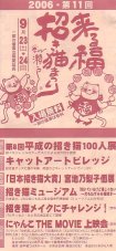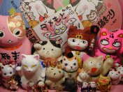 | 2006年の招き猫まつりもアッという間に終わってしまい、気持ちは既に来年の招き猫まつり。楽しい時って何でこんなに早く過ぎてしまうんでしょうね?「平成の招き猫100人展」に出展されているねこさん達は毎年どんどんスゴくなる勢い。ネットでも見ることはできますが、やっぱり実物を目の当たりにすると迫力が違います。懐かしい感じの商店街の雰囲気も、作家さんたちやお店の方との交流も現地ならでは。何度行ってもほんと楽しいです(≧∇≦)今年も沢山の作家さんや猫仲間の方達とお会いすることができたし、ねこさんも沢山連れ帰って来ました。(ついでに筋肉痛も(^^ゞ)また来年お会いしましょ〜っ! |