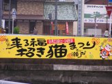 招き猫まつりスタンプラリーにも参加。瀬戸中に広がっている会場を巡ってスタンプを押し、全部貯まったら抽選で招き猫グッズが貰えるラリーです。くまなく会場をまわれるし、台紙がうちわになっているのも嬉しい。しかも招き猫グッズまで貰えるという一石三鳥の優れもの(=^m^=)ねこ丼家は2等、4等、5等が当たりました。 |