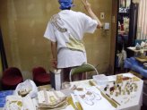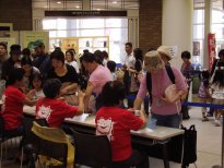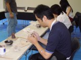 2006年も体験してきました。今年は瀬戸蔵で開催されていた「しなの工房めぐり猫づくりだニャー」の作陶体験。こちらも沢山の方が参加されていました。みんな思い思いに粘土をコネコネ。11月にしなの工房の登り窯で焼成して送ってくれるそうです。出来上がりが楽しみ。 |