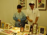 文化センター「アートビレッジ」で松風さん、ねこどんさん、komkomさん(左、中)