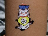 2009年の招き猫シール。2009年は瀬戸市政施行80周年ということで「80」がデザインされていました。どんぶりには「福」の文字。 ![]() |