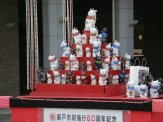瀬戸蔵前に飾られていた「招き猫山車」。瀬戸市政施行80周年市民お祝いプロジェクトとして、招き猫さん80匹が乗ったひきまわし山車(写真左)がお目見え。 ![]() |