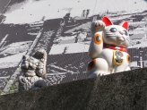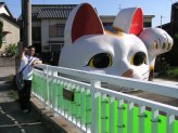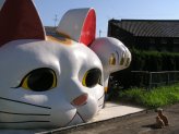 ![]() ![]() 常滑市街を見下ろす巨大招き猫さん。(=^m^=) その巨大招き猫さんを見つめる本物そっくりの陶製のねこさん。 下は個性豊かな招き猫さんたち。それぞれに意味とご利益があります。 |
