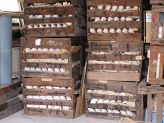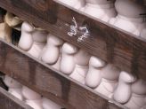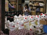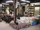 ![]() 隣にある倉庫には、絵付けを待つ招き猫さんたちが所狭しと積まれていました(=^m^=) |