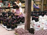 ![]() 冨本人形園さんでは、焼き上がった招き猫さんに絵付けをしています。 流れ作業なのかと思いきや、ひとつひとつ丁寧に手書きで絵付け。 うわぁ〜大変だぁ〜っ\(◎o◎)/! 手前の茶色い招き猫さんたちは金色になるそうです。 |