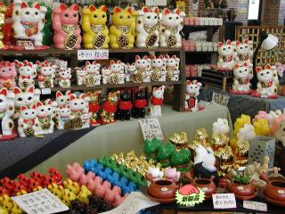 お蕎麦屋さんの招き猫で有名な愛知県常滑市にある「ヤマタネ」さんです。 とにかく、招き猫さんの数が凄い! お店に一歩足を踏み入れた途端、沢山の招き猫さんに圧倒されます。 しかも常滑焼きの展示即売のお店だけあってお値段が安いのです。 市価の半額ほどでしょうか。お蕎麦屋さん招き猫さんから作家物ネコさんまで 思う存分、招き猫に浸れるお店です。